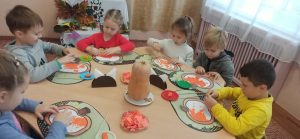 весняний цикл “Свято першого жайворонка” – фігурки випечених із солоного тіста жайворонків та голубів; “Вербна неділя” – вербові гілочки, прикрашені квітами, стрічками тощо.
